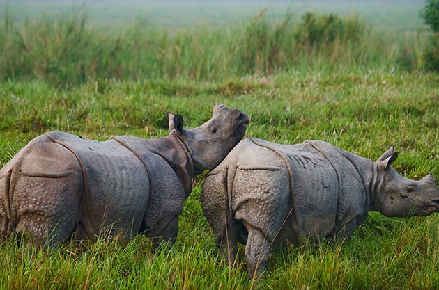 I had almost given up hope as we rode towards our jeep of spotting a rhino that day. But whether it was because of Brahma’s determination, my prayers to Kamakhya, or the right time of the day – it was right then that we heard the trampling of branches close by. “This could be it,” said Brahma, excitedly. With my heart in my mouth, I let my eyes wander towards the disturbances and kept my ears trained to the sounds. And then there they were – two giant grey animals, their hide covered in “armour”, their horns neatly set between their eyes.