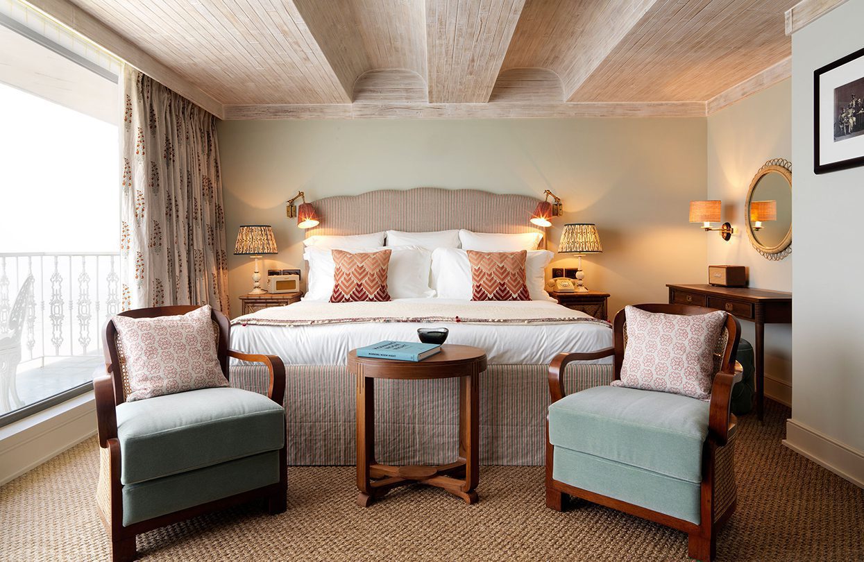 Every room recalls elements from Indian culture and design, including sisal carpets, lampshades draped in sari fabric, and meticulous woven-cane furniture. Much of the fittings in the new Soho House Mumbai are locally sourced, some vintage, some custom-made for the property.